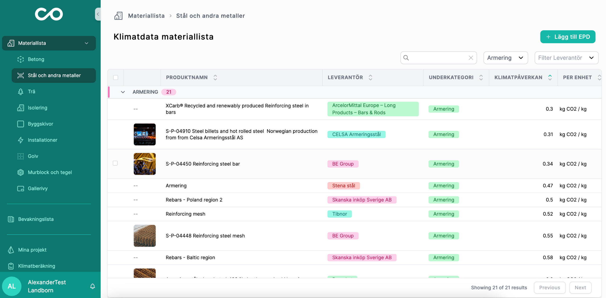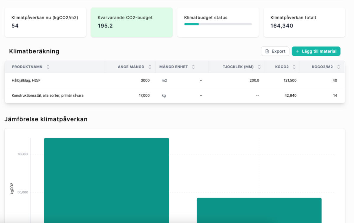Spara EPD:er till ditt projekt och få en överblick över projektets CO2-budget