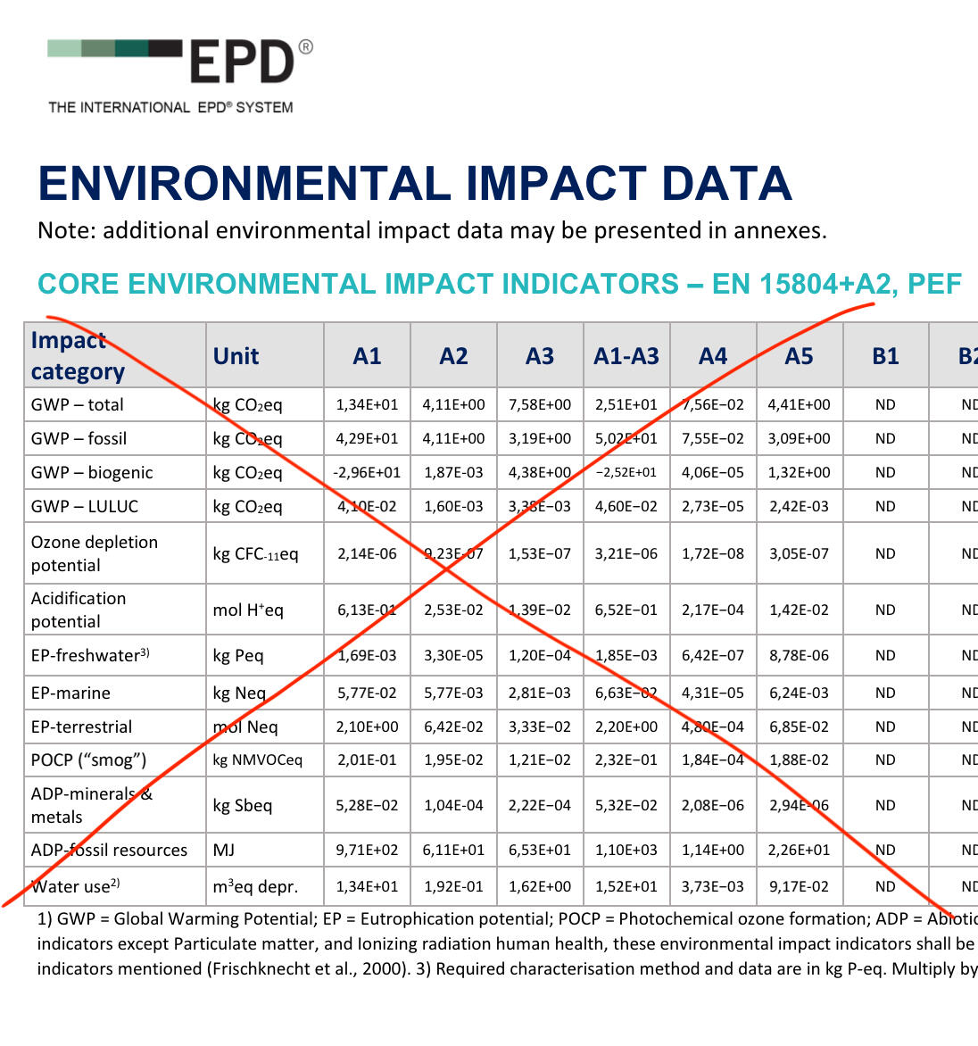 Ingen vill spendera sin tid att försöka utläsa sådan här info från EPD:er:
