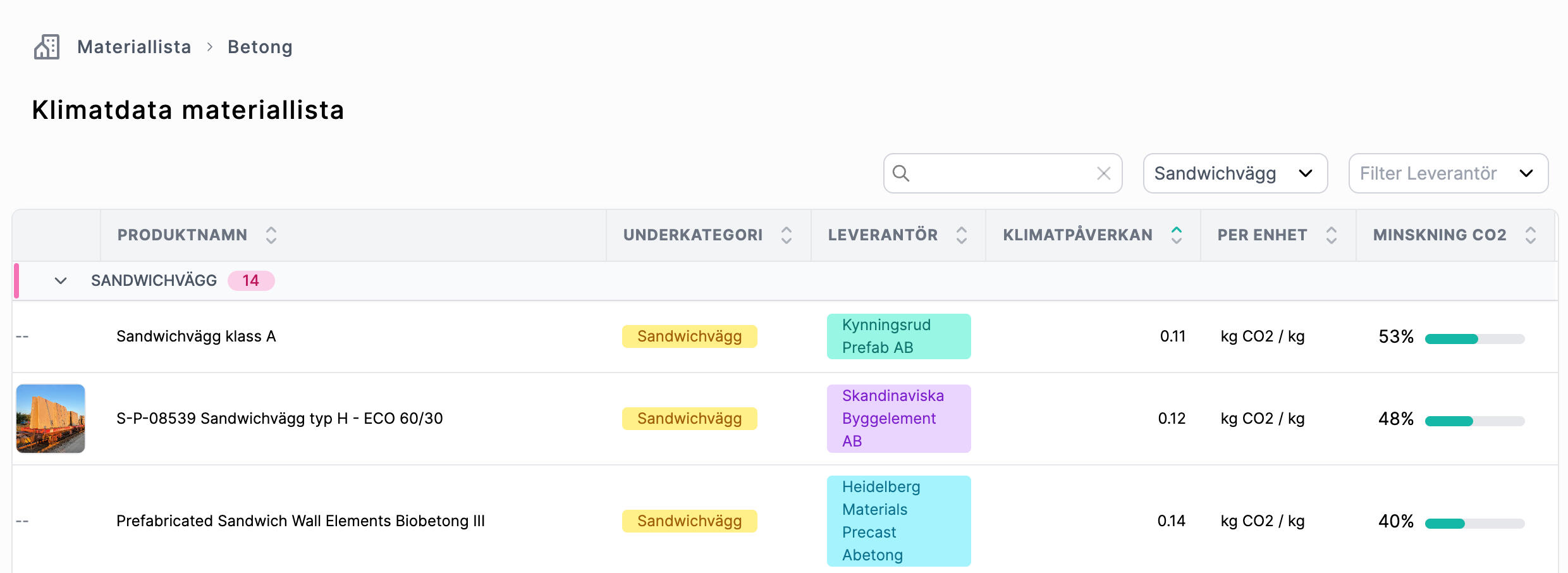 Vår databas är designad för att du enkelt ska kunna jämföra byggmaterial baserat på deras klimatpåverkan.